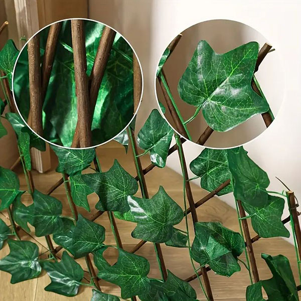 Kein Gießen, kein Schneiden, kein Verblassen. Mit UV-stabilisiertem, wetterfestem Efeu bleibt Ihr Raum das ganze Jahr über grün und frisch, ohne Pflegeaufwand.