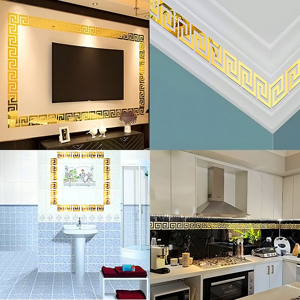 Badezimmer: Werten Sie Ihr Badezimmer auf, indem Sie Aufkleber an den Wänden oder um Spiegel herum anbringen, die das Licht reflektieren und ein geräumigeres, luxuriöseres Gefühl vermitteln.