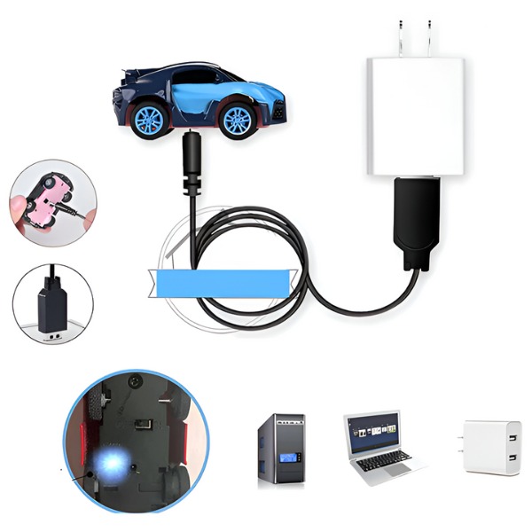 Kein lästiges Wechseln der Batterien. Laden Sie das ZOOMZI Auto einfach mit einem Laptop, einem Auto oder einer Powerbank auf. Eine volle Ladung dauert nur 30 Minuten und ermöglicht eine Spielzeit von bis zu einem halben Tag – perfekt für stressige Tage!