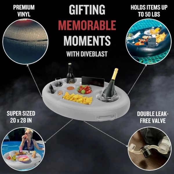 Unser schwimmendes Pooltablett ist ein durchdachtes, spaßiges Geschenk, das deine Familie und Freunde lieben werden und das ihren nächsten Pooltag oder Strandurlaub aufwertet.