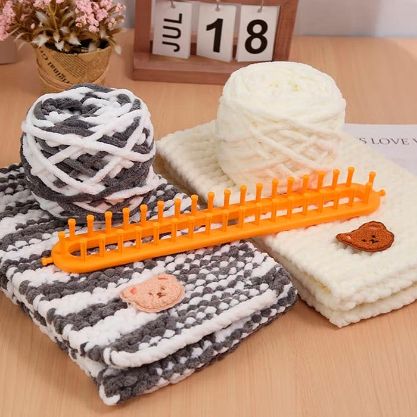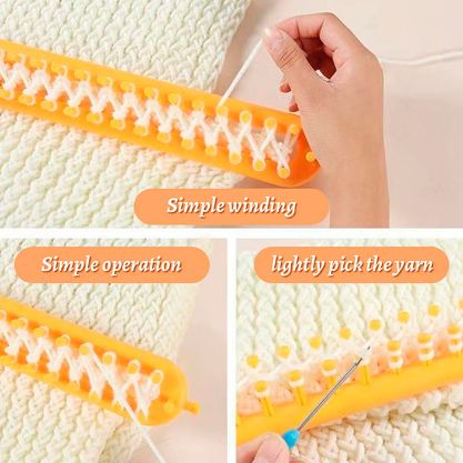 • Das Paket enthält: 4x Strickhilfen in verschiedenen Größen, 1x Haken zum Abnehmen des fertigen Produkts, 2x Nadel, 1x Anleitung