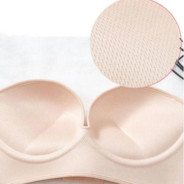 Das auf der Haut haftende Silikonfutter sorgt dafür, dass der BH sicher an seinem Platz bleibt, ohne zu verrutschen.