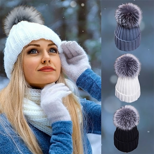 Warme Strickmütze mit Bommel | GLACIA 1+1 GRATIS